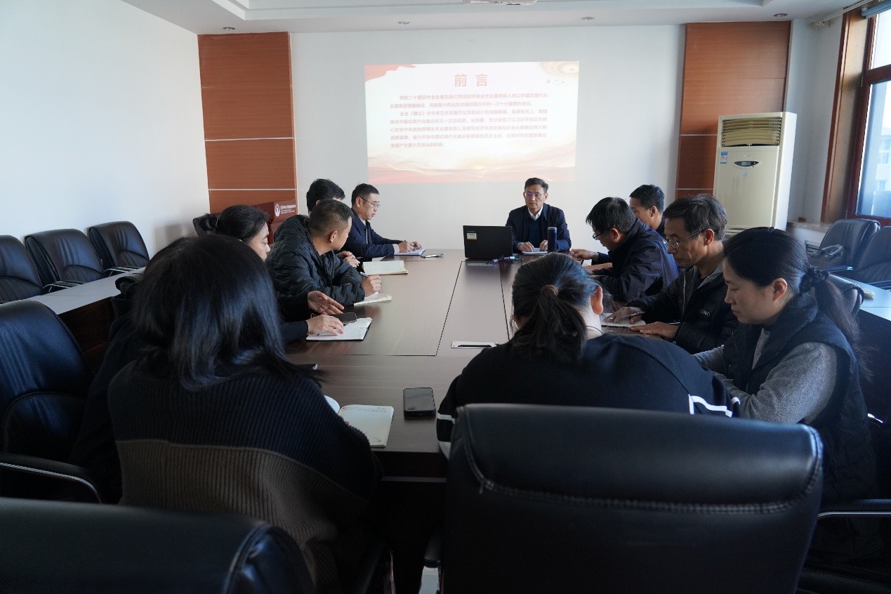 郭曰铎从“掌握党的二十届四中全会基本情况及重大成果”,“正确认识‘十四五’时期我国发展取得重大成就”,“深刻领会党中央关于国内外形势的基本判断”,“准确把握‘十五五’时期经济社会发展的指导思想、重大原则、主要目标、战略任务和重大举措、根本保证” ,“谋划、落实好学院‘十五五’规划,推动党的二十届四中全会精神落地见效”五个方面宣讲党的二十届四中全会精神。他指出,党的二十届四中全会是在我们党团结带领全党全国各族人民以中国式现代化全面推进强国建设、民族复兴伟业的关键时期召开的一次十分重要的会议。全体党员要深入学习贯彻习近平总书记在党的二十届四中全会上的重要讲话和全会精神,坚持学以致用,集思广益,共同谋划好学院“十五五”时期的发展思路和具体举措,切实把学习成果转化为推动学院高质量发展的实际成效。