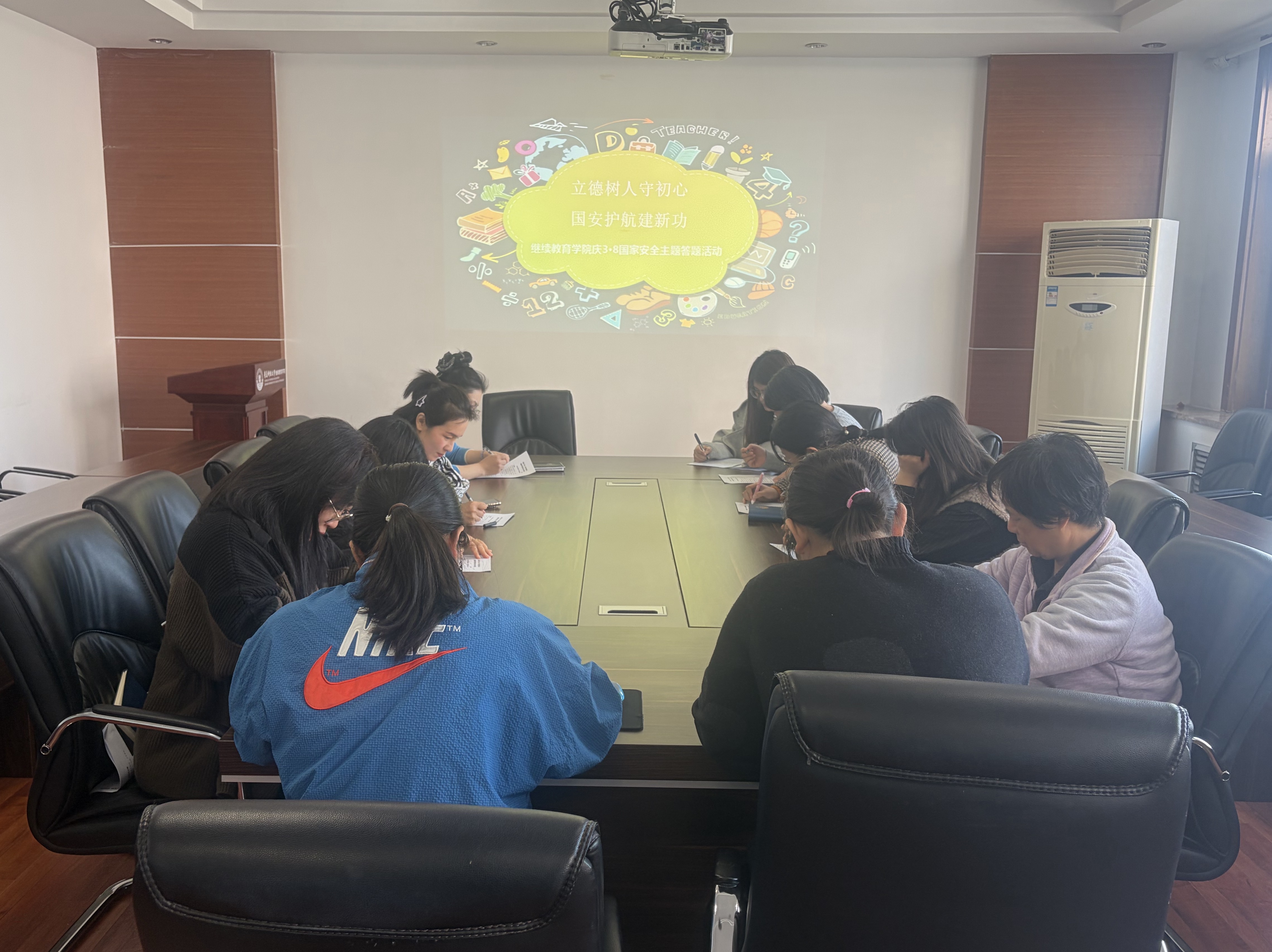 3月20日下午,学院全体女职工共同观看国家安全题材影片《惊蛰无声》。影片以生动的叙事和紧张的节奏,展现了隐蔽战线上国家安全工作者的忠诚与担当,深刻诠释了维护国家安全的重要性与紧迫性。观影过程中,大家全神贯注,深受触动。3月26日下午,学院组织开展了国家安全知识答题活动。活动采用纸质试卷形式,内容涵盖总体国家安全观、国家安全法律法规及相关政策知识。女职工们积极响应、认真作答,在答题过程中进一步深化了对国家安全知识的理解与掌握,切实推动了国家安全意识入脑入心。