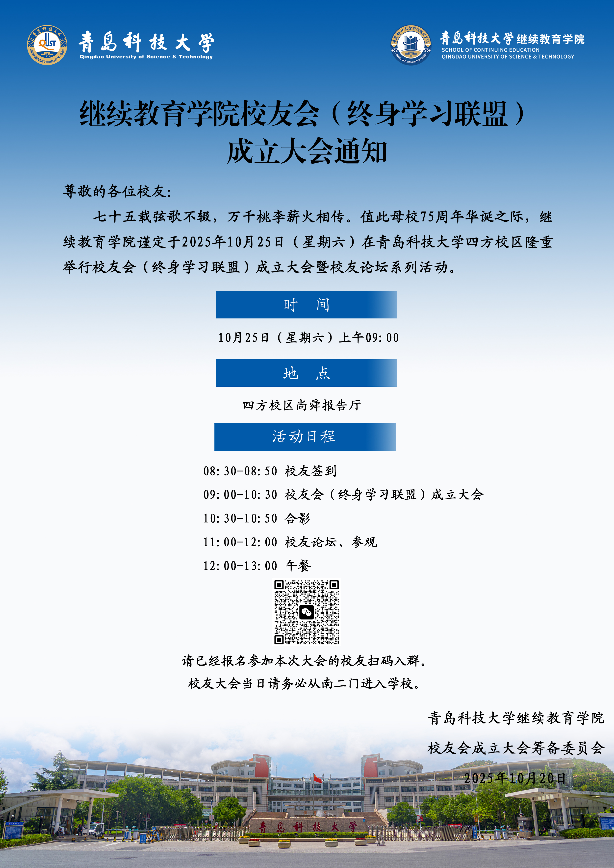 继续教育学院校友会(终身学习联盟)成立大会通知
